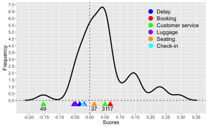 Finally, Topic 37 is about seating. It's a "positive" topic (albeit only just). Airline 4 (the blue no-frills one) scores poorly here. This is not a surprise.